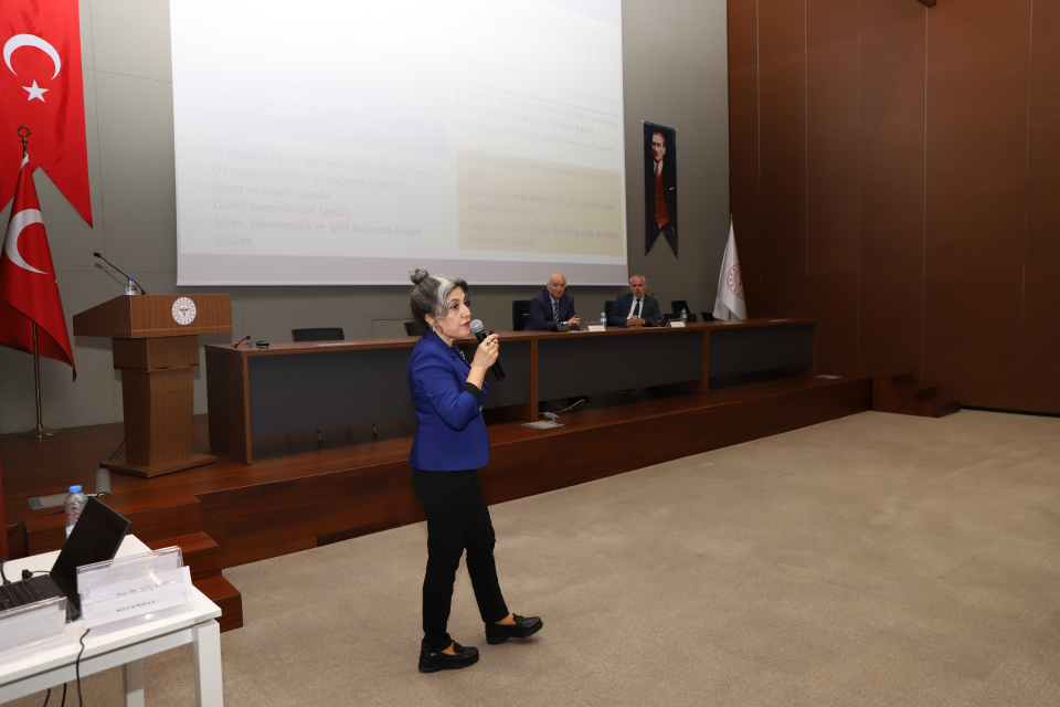 Program kapsamında, Türkiye Geleneksel ve Tamamlayıcı Tıp Enstitüsü (TÜGET) Başkanı Prof. Dr. Elif Güler Kazancı tarafından Geleneksel ve Tamamlayıcı Tıp (GETAT) uygulamalarının bağımlılık tedavisindeki yeri bilimsel veriler çerçevesinde değerlendirilmiş; sigara bırakma sürecinde bu yöntemlerin etkililik, güvenlilik ve klinik uygulanabilirlik boyutları kapsamlı biçimde ele alınmıştır. GETAT uygulamalarının mevcut farmakolojik ve davranışsal tedavi protokollerine entegrasyonuna yönelik bilimsel ve stratejik çerçeve ortaya konulmuştur.